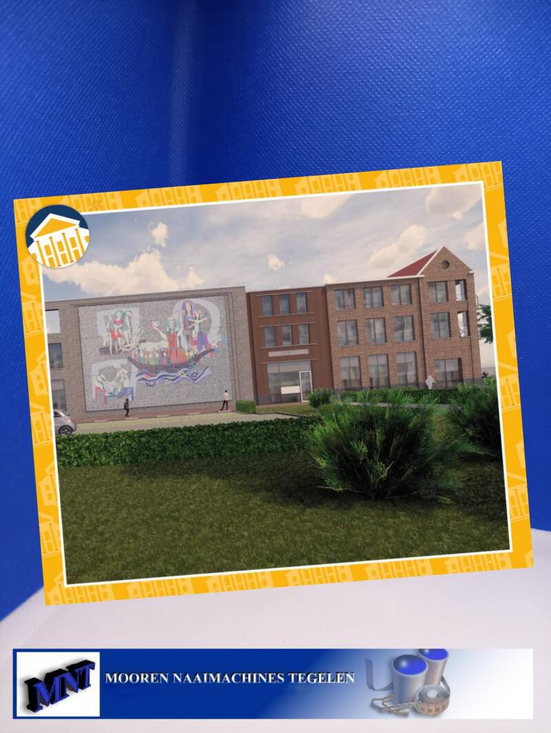 En de bekende mozaïk van de voormalige ingang… Die is bewaard gebleven en krijgt een mooie plek in de nieuwe plannen.💪