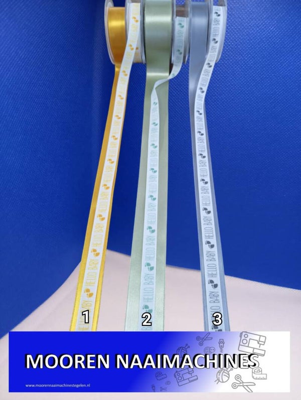 hierop ziet u het hello Baby lint gecombineerd met uni satijn lint