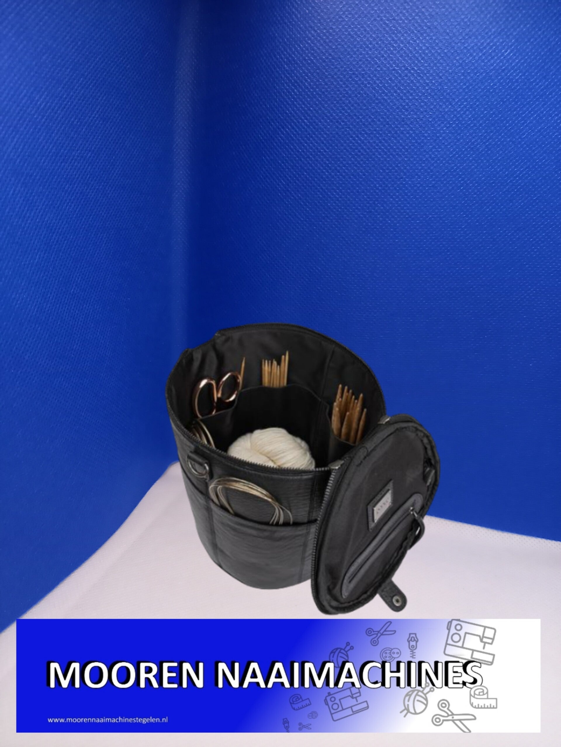 Saturn XL heeft een hoogte van 28 cm en is ontworpen met praktische buiten- en binnenzakken, waardoor je voldoende opbergruimte hebt voor je brei- en haakbenodigdheden. Twee openingen aan de bovenkant stellen je in staat om je garen in de tas te laten terwijl je breit - om je garen klitvrij te houden.