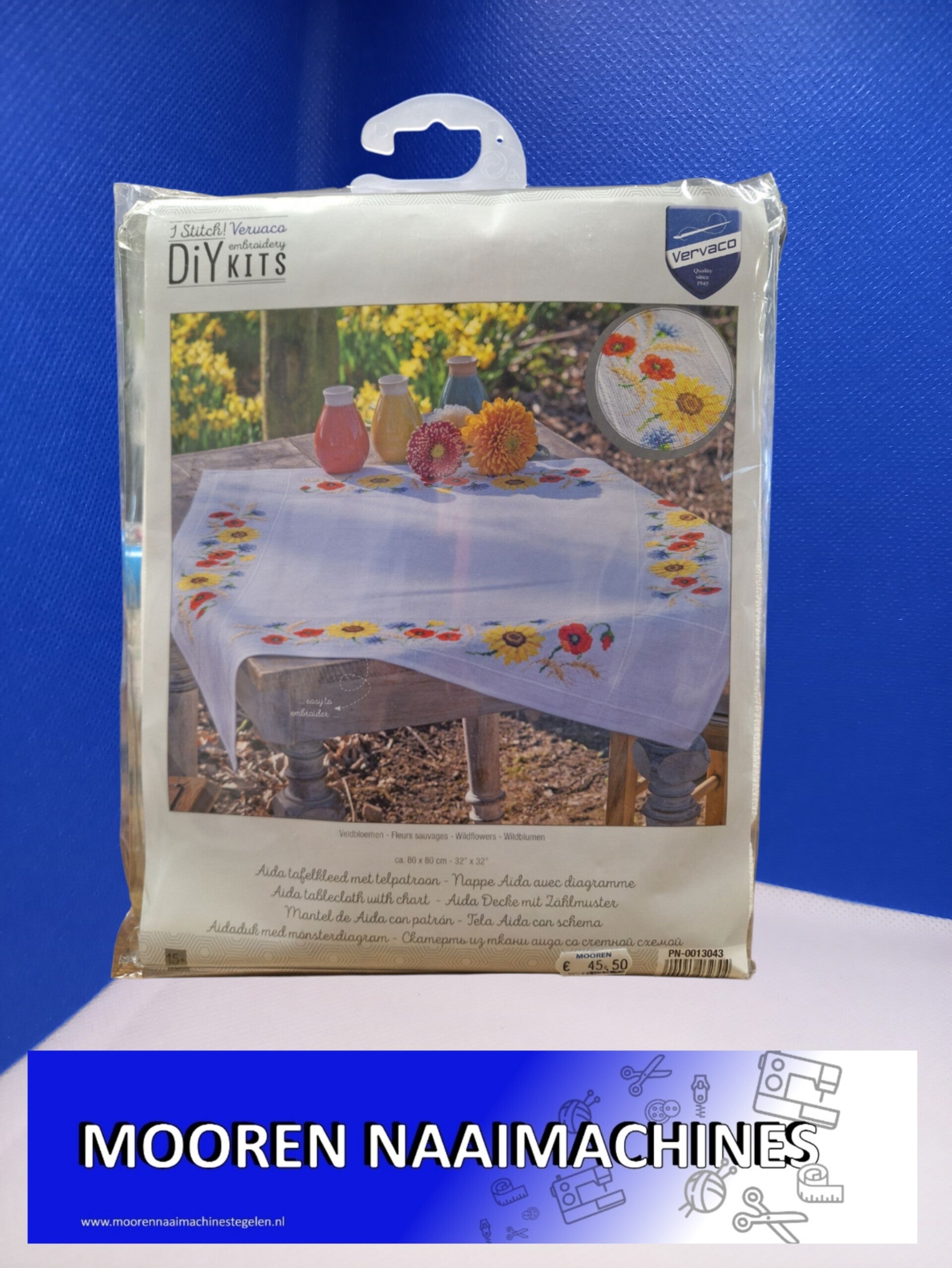 Verachtert Borduurpakket Kruissteek Taffellaken voorbedrukt 80x80cm Veldbloemen