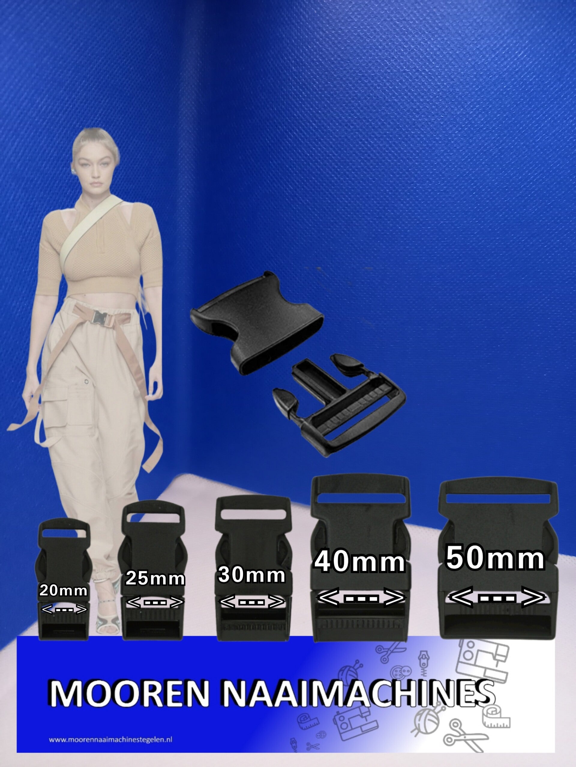Let op: De vermelde maat betreft altijd de maximale breedte van de band die door de doorvoer past Deze klikgesp, ook wel sluitgesp, kliksluiting, steekgesp of parachutegesp genoemd is geschikt voor materiaal met een breedte van 20, 25, 30, 40 of 50mm. Kunststof ofwel plastic klikgesp met een zijsluiting (side release) die met 2 vingers te openen is.